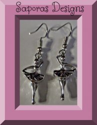 Silver Tone Dangle Earrings Ballerina Design With Pink Crystals